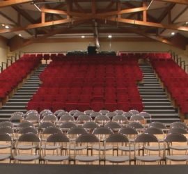 C'est une jolie salle de spectacle qui accueille les artistes. 90 % des sièges sont installés en gradin et quelques chaises complètent le parterre.