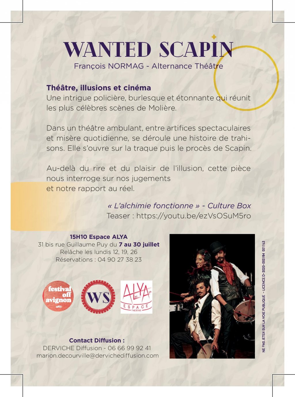 Toute l'équipe du Festival "Vive La Magie" est fière de vous annoncer que la pièce de François NORMAG (le présentateur du Festival) intitulée WANTED SCAPIN sera à AVIGNON.