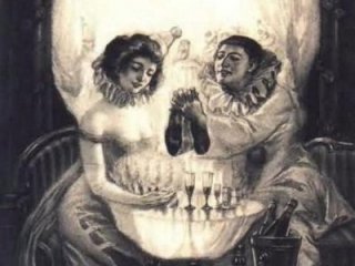 ou bien Arlequin et sa Colombine ? Ne vous posez pas trop de questions si vous voyez le crane en premier, ou si vous ne voyez que le crane, on ne peut rien faire pour vous !Etonnant t