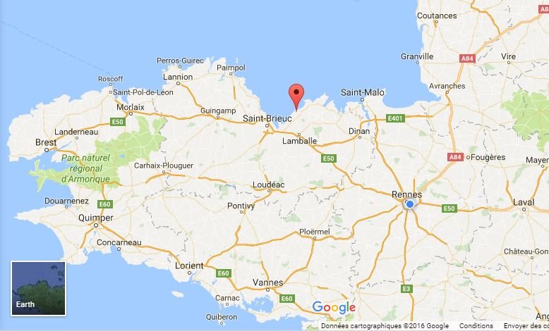 Facile à situer sur la carte, la ville est installée sur la côte est de la baie de Saint-Brieuc. On l'appelle aussi « Côte de Penthièvre ». C'est une ville facile d'accès à 25 km à l'est de Saint-Brieuc et non loin de Lamballe. Au vu de sa géographie, on peut même se demander si le village gaulois d'Astérix et Obélix ne trouverait pas son origine ici...